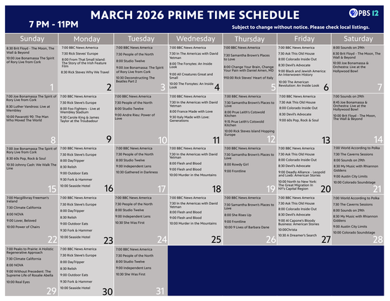 March 2026 Primetime Grid