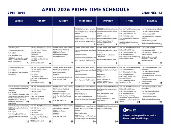 Download and print our primetime grid for channel 12.1